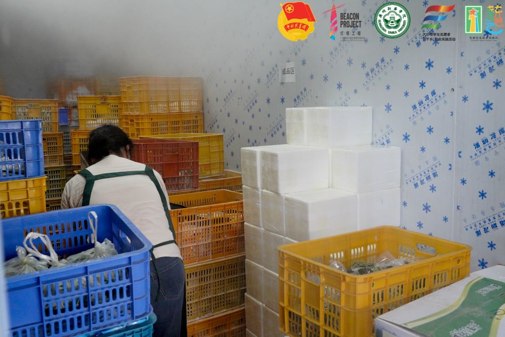 图为英德市万仔蚕桑专业合作社冷库 李伊楠摄 7月14日,广州新华学院艺新艺邑突击队走进与英德市万仔蚕桑专业合作社形成“合作社+公司”模式的英德市鲜蕊芽生态农业发展有限公司进行深度调研。该公司创立于2019年,核心业务涵盖农业种植及农副食品加工。其生产基地拥有3000多平方米厂房与8000立方米冷库,并管理着800亩自有原生态桑园及通过惠农扶贫协议定向收购的2300亩桑园,年产量达3000吨。