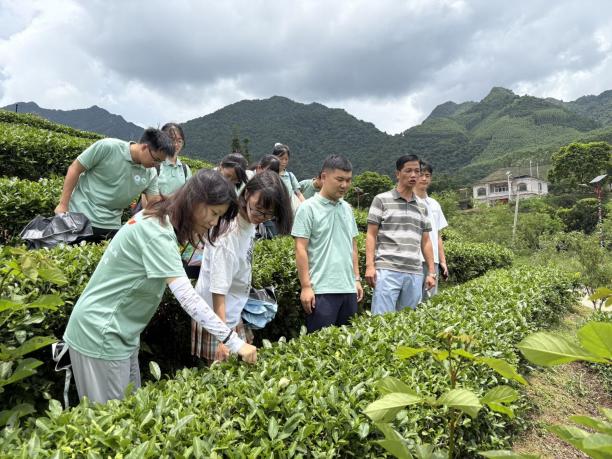为深入了解茶产业的发展模式,提升大学生对茶产业链条的直观认知,2025年7月14日下午,桂林理工大学环境科学与工程学院“一叶兴乡”三下乡社会实践团在广西昭平县名优企业鹊鸣春茶业有限公司开展了一次实践活动。通过沉浸式学习与实践,团队成员系统了解了茶叶采摘茶树养护的过程,在山野之中收获了难得的一线经验。