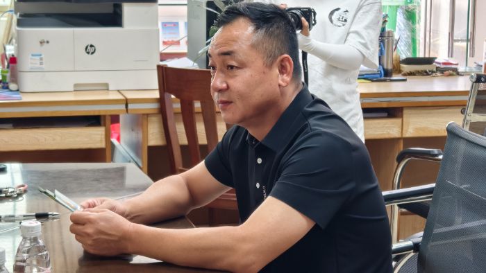 图为越战老兵陈权长在述说经历。沙怡静供图