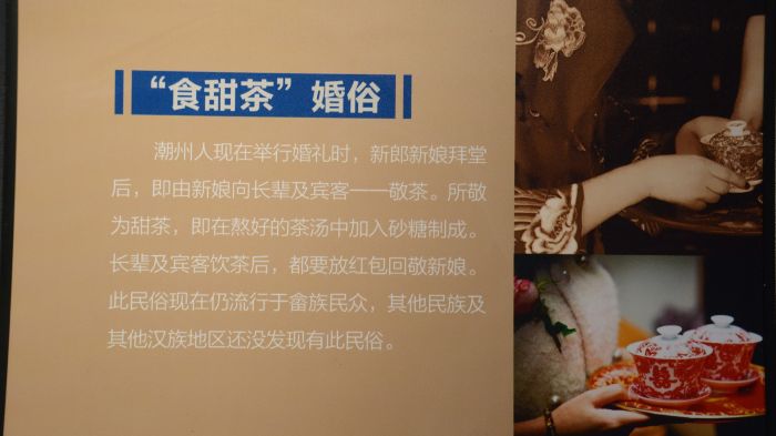 图为“食甜茶”婚俗展板。严子霖摄