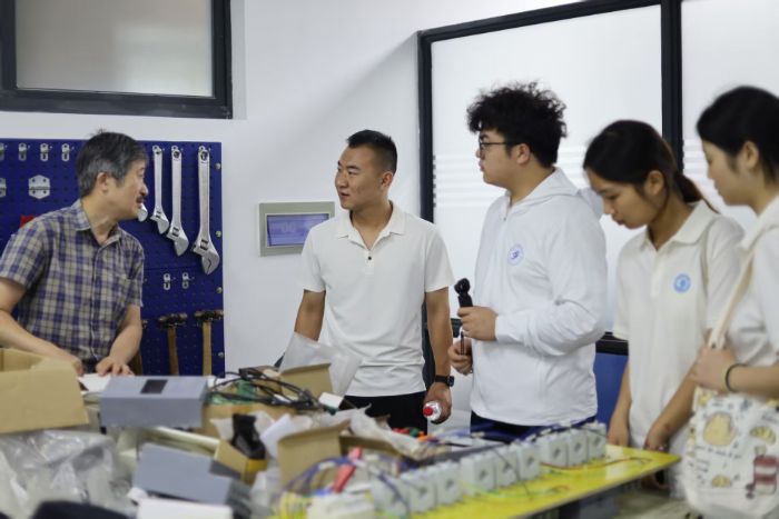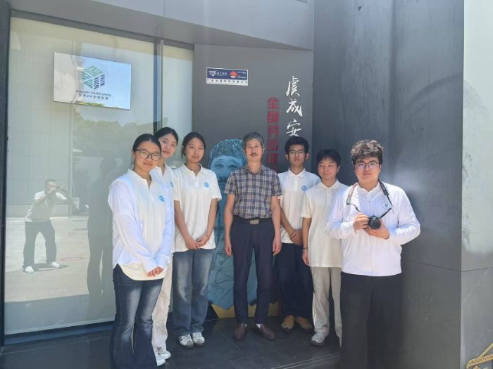 最后,实践团参观了虞成安技能大师工作室,深入了解他在船舶技术创新和设备改造方面取得的成就。工作室里陈列的机械设备、荣誉证书和奖章,见证了虞成安先生多年来扎根岗位、勇于创新的精神。