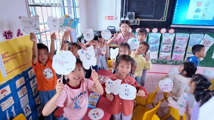 一把小小的扇子,成为了孩子们表达内心世界的舞台。在心理绘画扇子的课程中,志愿者们引导孩子们闭上眼睛,想象自己心中最美好的画面。然后,孩子们拿起画笔,在扇子上尽情地挥洒着自己的情感与梦想。