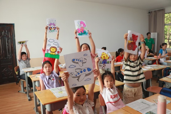 图为暑托班小朋友与自己画作的合影 赵珉熠供图
