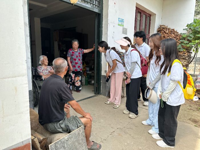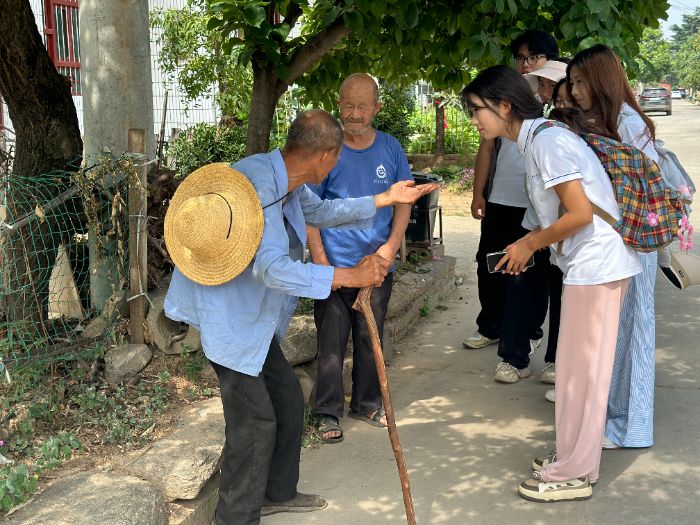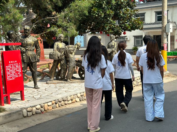 随后,实践队员参观了村内其他革命主题建筑,这些作品以具像化表达串联起殿镇村的红色脉络,进一步深化了大家对当地革命历史的系统认知。为了更深入探寻殿镇村的革命历史,实践队员走访了高龄村民。老人们以亲历者视角,回溯了殿镇村在革命岁月中的斗争场景,一个个生动故事让那段烽火岁月变得可感可知,也让队员们对“军民团结如一人,试看天下谁能敌”的革命真理有了更深切的体悟。