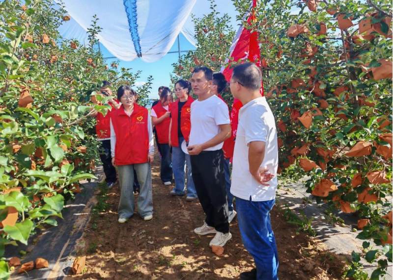 镜头前,实践团成员手持红润饱满的秦脆苹果,细致讲解“果型端正、甜度达16°”的独特优势;剥开鲜嫩的青皮核桃,演示“现剥现食”的清爽口感;更通过镜头带领网友“云游”千亩果园,沉浸式展示有机肥种植、生态防虫的现代农业魅力。实时互动中,网友们纷纷留言下单,直播间单场观看量突破万人次,为农产品打开了新销路。田间地头同步变身“实践课堂”,宜君县农技专家、祥裕苹果专业合作社负责人任孝军穿梭在果树间传经送宝,从春季修枝塑形的通风透光技巧,到夏季套袋防虫的操作规范,再到秋季施肥抗寒的科学方法,将多年种植经验毫无保留地传授给实践团成员们。大家手持笔记本穿梭林间,记录要点、观察差异,在实践中掌握现代农业技术。