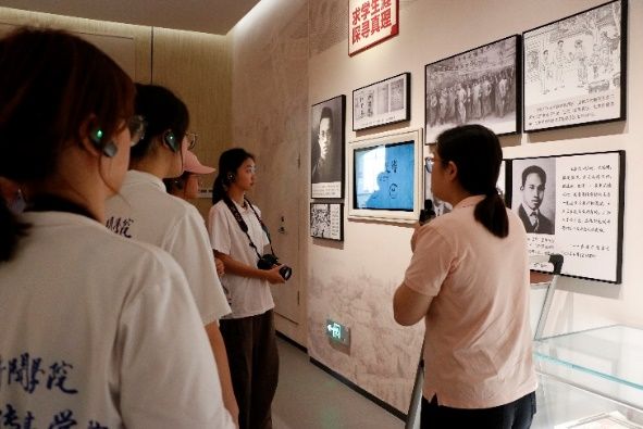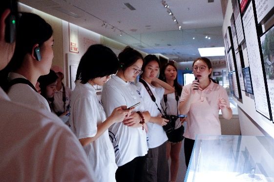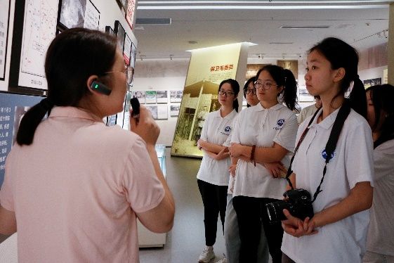 图为讲解员高梦向实践团队介绍纪念馆摄|刘梦铃