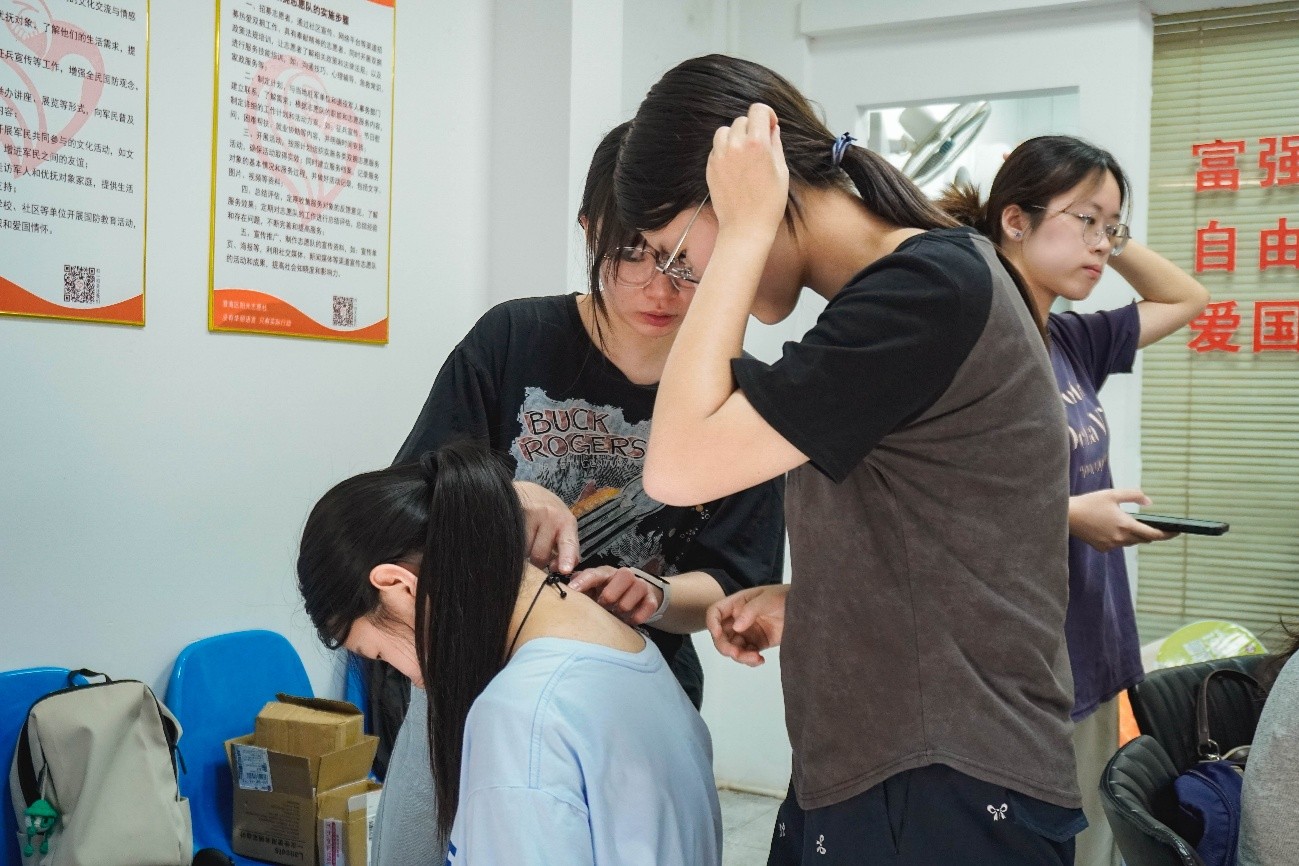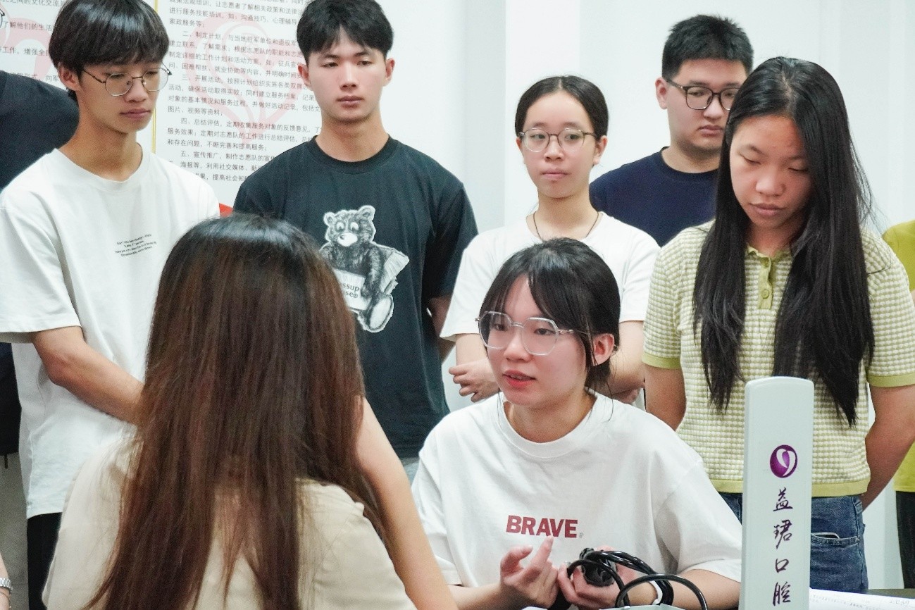 2025年7月14日,广东医科大学澄帆志愿服务队在华冠社区党群服务中心开展培训,为接下来的义诊做好准备。