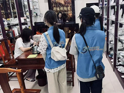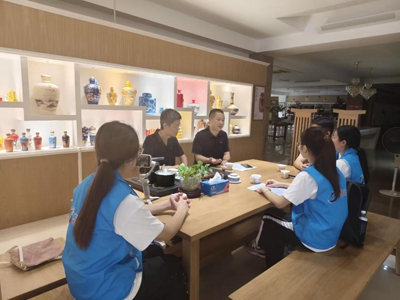 7月7日,“振兴燎原”突击队深入枫溪镇池湖日用陶瓷批发中心,团队首访池湖日用陶瓷批发中心。通过预研优化问卷,系统性收集一手数据,初步建立产业认知框架。当日复盘分析,动态调整后续方案。