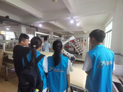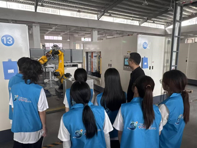 图丨企业高管及枫溪镇团委书记带领团队参观广东四通集团股份有限公司生产线自动化设备