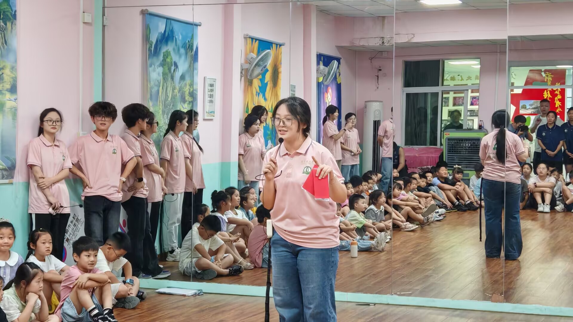 在开课仪式上,我看到了热情洋溢的家长、活泼可爱的孩子和认真负责的支教队员们,大家齐心协力,使得开课仪式井然有序地进行。外面细雨绵绵,室内欢声笑语不断。为了更快地与孩子们建立联系,支教队员们提前一周就开始筹备破冰活动。他们引导孩子们跳起富有节奏的舞蹈以暖场,精心挑选适合孩子们的舞蹈和游戏,并解决了一系列实际问题,终于在今天展现出成果。起初还有些羞涩的孩子们,在队员们夸张又亲切的动作带动下,渐渐加入进来。后排的小姑娘跟着节奏晃动着羊角辫,前排的小男孩则模仿着队员的步伐,大厅里瞬间成了欢乐的海洋。 在游戏中,孩子们逐渐消除了对环境和支教队员的陌生,我们也缓解了对未来支教活动的紧张情绪。