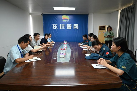 7 月 3 日,在指导老师韦通洋的带领下,我们突击队骨干走进东坑镇网格管理中心。座谈会上,网格中心负责人的介绍让我们对基层治理有了全新认知。基层治理员是基层治理工作的直接执行者与落实者,承担着出租物规范化管理、消防安全巡查、工厂企业巡检等网格化管理工作。“基层治理员是群众安全的‘第一道防线’”,这句话深深烙印在我们心中。