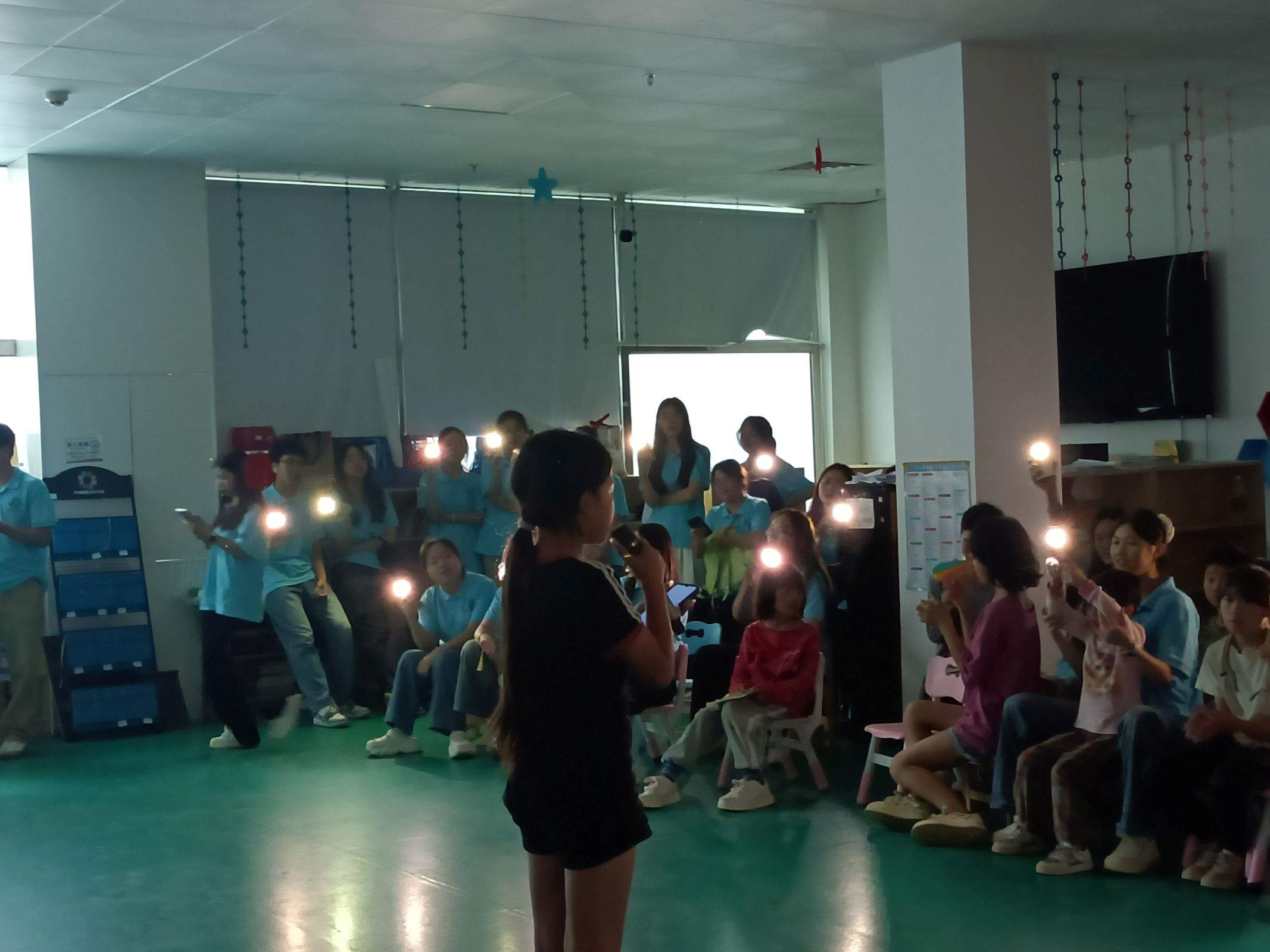 举办联欢汇演,不仅是实践团队员们展示实践成果的机会,更号召社区小朋友们通过唱歌、跳舞和互动游戏积极展示自我,帮助他们逐渐克服害羞心理,增强自信心与勇气,实现“文”绽成长新“芽”。