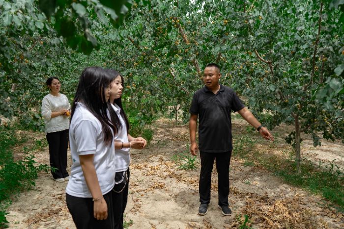 除了直播带货,“芯生命•链行田野,情暖乡间”实践团还为当地农民提供了技术帮扶,当果农们得知队员们来自塔里木大学,纷纷就种植中遇到的实际问题急切求教:“专家娃娃们,你们看这杏子为啥左右长得不均匀?”等问题,面对这些问题,团队成员第一时间请教本校园艺专业的指导老师,并查阅权威资料。在获得老师专业的解答和技术建议后,队员们立即向果农提供尝试褪黑素和绿色防控等实用方法,田间地头成了资源的流动站,不仅实践了理论知识,更将塔里木大学的科技资源直接输送到生产一线。