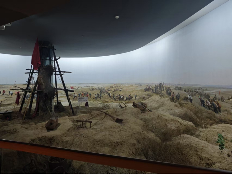 图为展示兰考人民在焦裕禄带领下治沙场景的画面。原宇航 供图