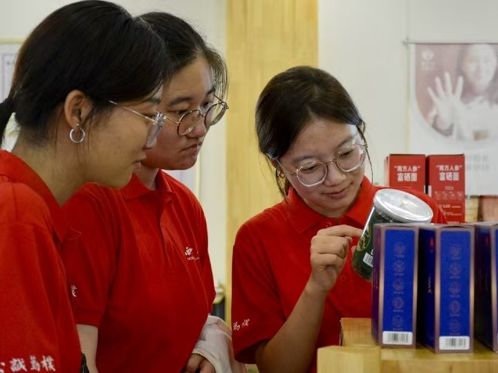 在讲解员的带领下,成员们来到产品展厅内,诸多绞股蓝系列创新产品整齐陈列,如绞股蓝面条、绞股蓝面膜以及绞股蓝胶囊,这些产品的创新使绞股蓝焕发出了多元价值,助力“秦巴仙草”走出国门。