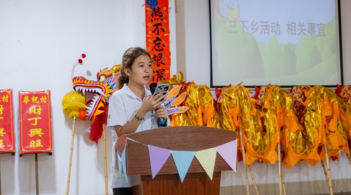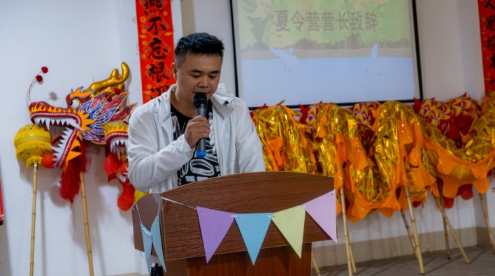 聆听各方发言,汲取先进教育。首先,同乡会会长丘加基对柳夏星火实践团的付出表示高度认可,也对夏令营安全保障问题加以强调。随后,夏令营营长丘东华希望学生们继续保持对家乡的自信与热爱,表达了对学生们学习传承舞狮、锣鼓文化的鼓励与期待。最后,柳夏星火队队长考赛尔为本次夏令营活动相关事宜做出介绍,并指出本次暑期社会实践活动的课程设计围绕客家文化传承与创新展开,将基于“文脉育童蒙,星火筑客梦”的课程总主题,开展“客韵寻根”“语润客乡”“非遗薪传”“跃动艺彩”“字载华源”五个系列课程。