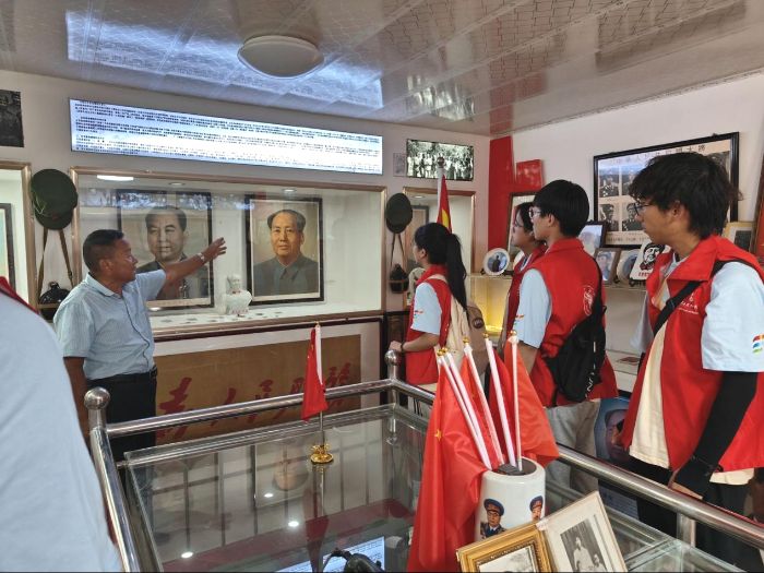 篇章四:红馆聆听初心语薪火相传使命担 “一间红馆藏岁月,满腔赤诚映初心。”7月11日下午,实践团走进当地的武山村红色展览馆,虽场馆不大,却陈列着承载革命记忆的老照片、旧物件,静静诉说着这片土地的红色故事。武时备馆长用沙哑却充满力量的声音,逐件讲解展品背后的英雄事迹——从抗战时期的支前故事到新时代的乡村变迁,从革命先辈的奋斗历程到当代党员的坚守奉献。