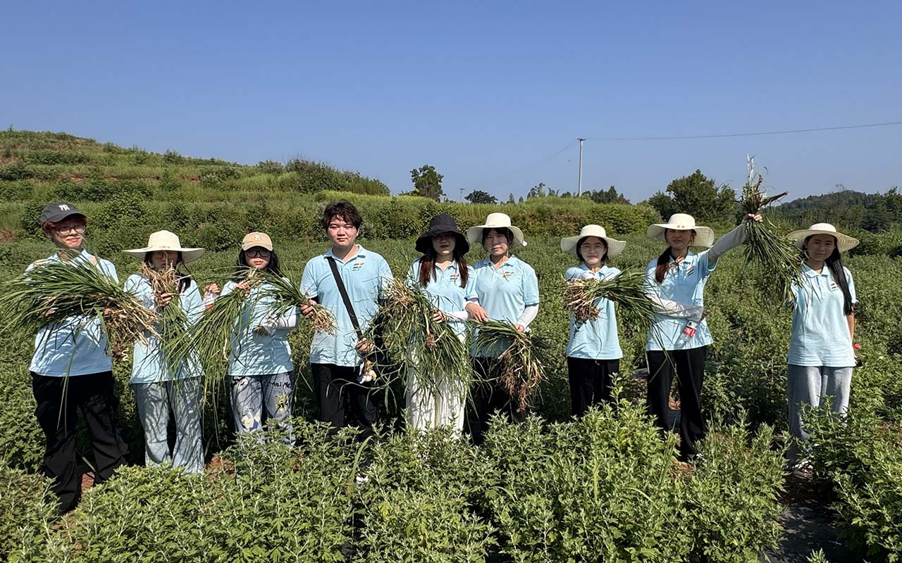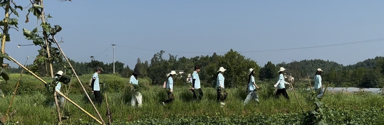 我们跟随老师钻入花田,弯腰清除杂草。豆大的汗珠顺着鬓角滑落,滴进松软的泥土里,转瞬即被蒸发。抬头时,阳光刺眼,却也让人感到一种脚踏实地的安心与乡村振兴必定成功的笃定。