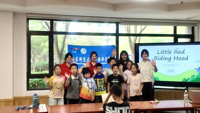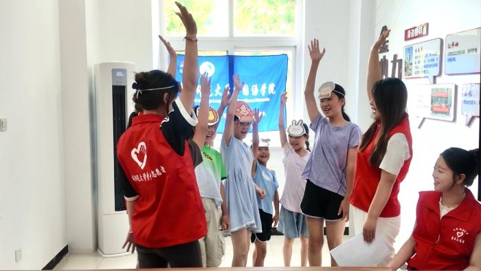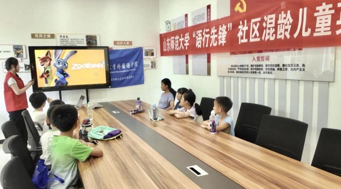 山东师范大学外国语学院“语行先锋”社区混龄儿童英语助学实践队贯服务社会宗旨,以专业所长赋能社区教育,用青春力量守护儿童成长,于2025年7月10日至14日,实践队6名成员走进济南市槐荫区兴福街道第二社区与济南市历下区文恒社区开展暑期实践活动。实践队队员在学院团委书记、学工办主任唐琨及辅导员邱琳的指导下,通过科技赋能、趣味互动与文化传承相融合的教学形式,为不同社区的混龄儿童定制专属学习课程,助力提升社区混龄儿童英语素养,以教育赋能点亮社区童年,让儿童在语言学习中拓宽国际视野、厚植文化根基,为社区暑期成长课堂注入青春动能。