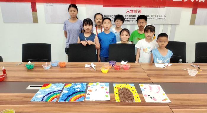 图为社区儿童与非遗纸浆画合影 刘思怡 摄