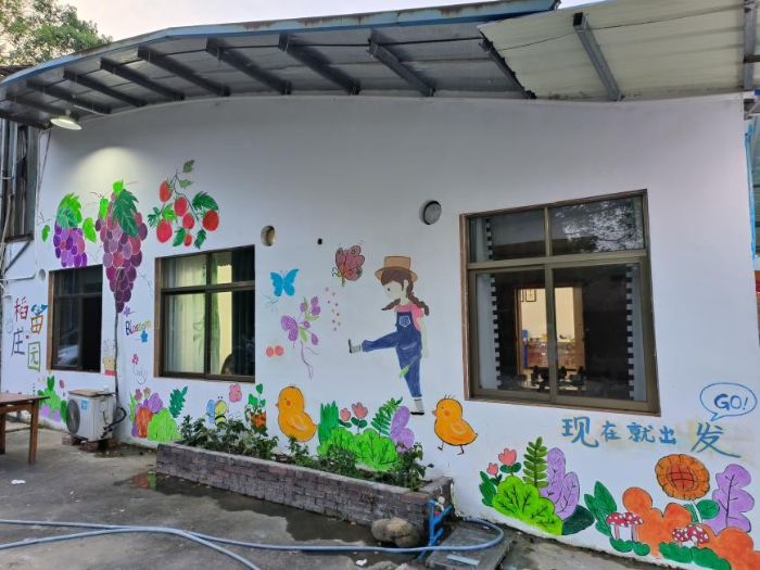 随后,突击队队员们积极投身于庄园墙绘创作工作。从构思画面到调色上色,他们分工合作,有的负责描绘,有的负责调色,有的负责上色,默契配合,充分发挥各自的特长,将农庄的美丽风景、当地的特色农作物以及充满卡通趣味的元素巧妙地融入到墙绘中,让昔日“冷冰冰”的墙面瞬间充满了生机与活力。