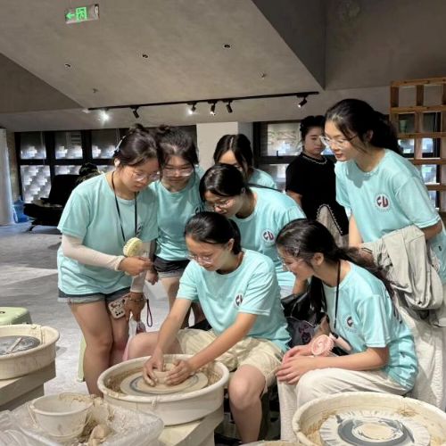 7月3日上午,团队走进雕塑瓷厂,实地调研现代陶瓷产业的发展态势;下午,成员们亲身参与陶瓷制作,从揉泥到拉坯,一步步体验传统工序。看似简单的动作,实则凝聚着匠人数十年的功力,这让队员们深切体会到“台上一分钟,台下十年功”的深意,对传统工艺的复杂性有了更直观的认识。