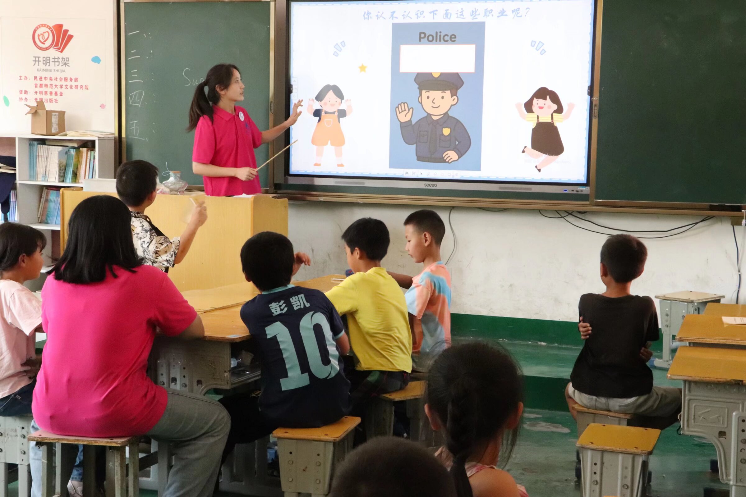 以“My Dream”为主题的英语课为孩子们插上梦想的翅膀。在队员们耐心引导和鼓励下,孩子们勇敢地用英语表达自己的理想——“警察”、“老师”……声音虽稚嫩却充满力量。课堂不仅锻炼了英语口语能力,更在孩子们心中播下了远大理想的种子,让他们深刻感受到用英语沟通、描绘未来的乐趣与成就感。