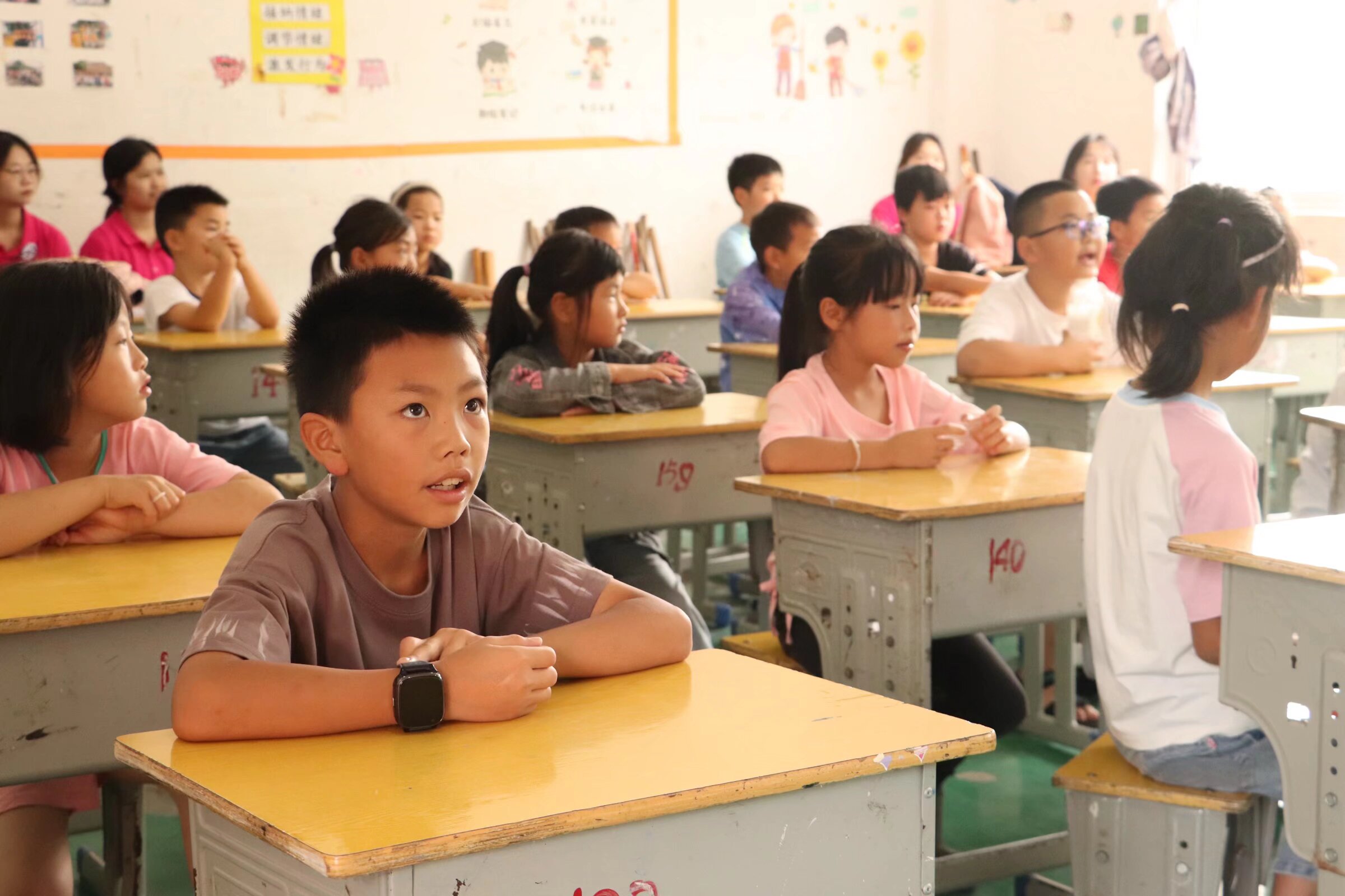支教队员与柳塘镇中心小学学生进行课堂互动