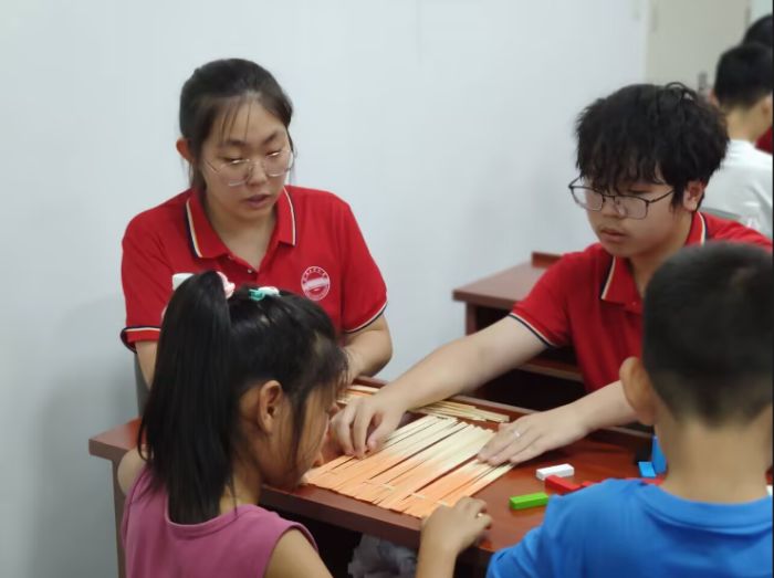 起初,孩子们的手法生疏,经常出现竹条松脱、走位错误等问题,但他们并未气馁。志愿者们也耐心地鼓励和协助。渐渐地,孩子们从困惑到领悟,从生涩到熟练,眉眼间写满了专注与自豪。