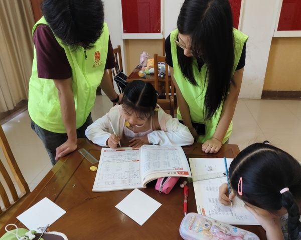 志愿者化身“小老师”,耐心辅导孩子们的暑假作业,从语文阅读到数学公式,逐一攻克难点。对基础薄弱的孩子,采用趣味教学法,如用故事理解应用题、游戏巩固单词,让学习变有趣。