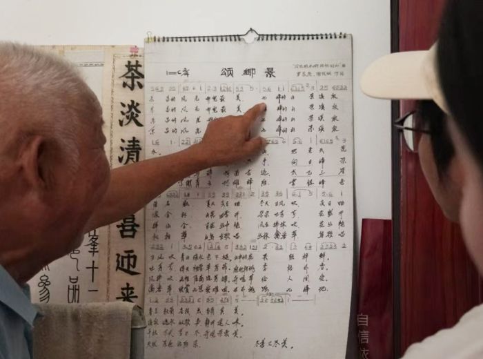 (图为传承人罗家茂分享九峰山歌创作灵感)