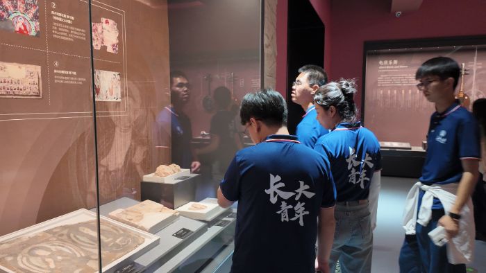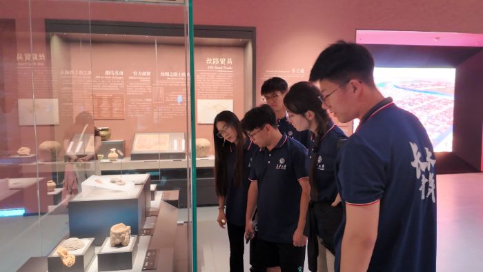 图为团队成员参观古丝绸之路相关文物。汤皓添摄