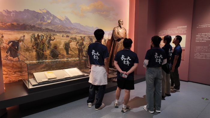 图为团队成员学习参观林则徐开勘垦南疆事迹。汤皓添摄