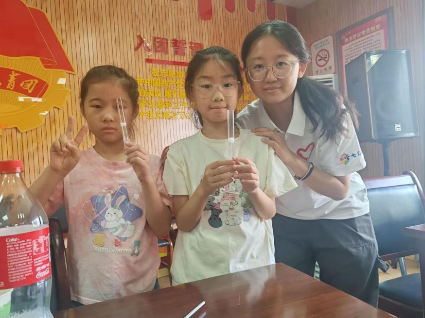 最激动人心的当属加入酒精环节。当淡黄色DNA絮状物从溶液里缓缓浮现,现场瞬间沸腾,欢呼声此起彼伏。孩子们举着实验成果,脸上洋溢着成功的喜悦,这一次动手实践,把抽象的DNA变得可触可感,悄然在他们心里埋下探索科学的种子,静待未来发芽。