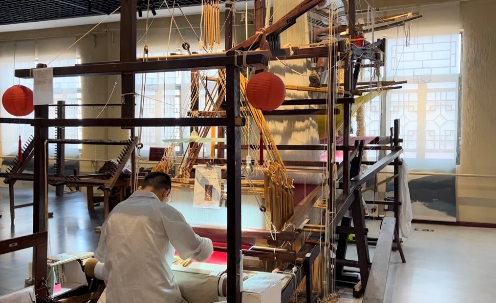 图为织工花楼架织布 吴佳慧摄