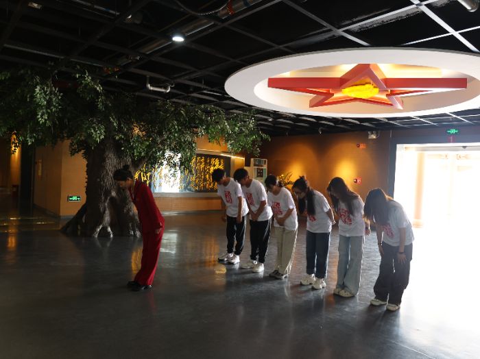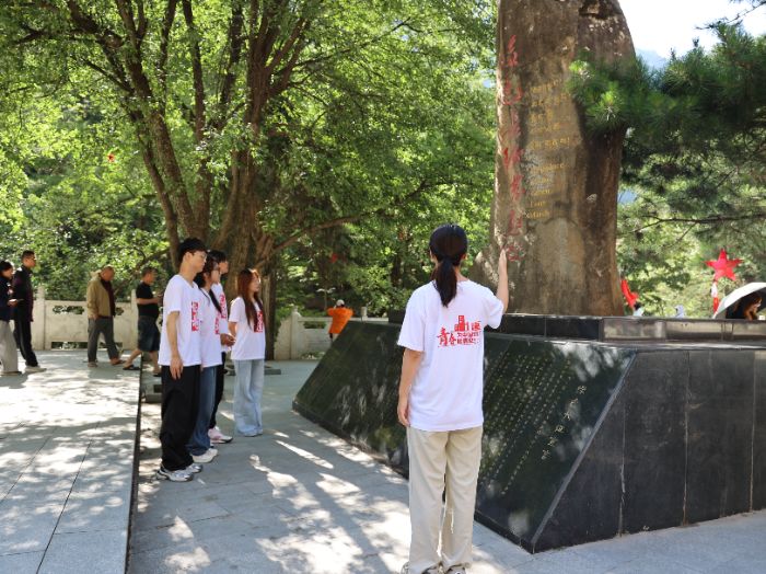 在哈达铺红军长征纪念馆,伟人群雕前师生肃立鞠躬,毛泽东同志“一直打到完全胜利”的铿锵誓言穿越时空,激荡人心。青石板铺就的“长征第一街”上,斑驳的砖墙与古槐树下老人的讲述,将“纪律严明”的红色记忆铭刻进学子心田。鲜红团旗下,指导老师赵宁带领成员重温入团誓词,誓言将信仰力量化为服务“三农”的坚实步履。