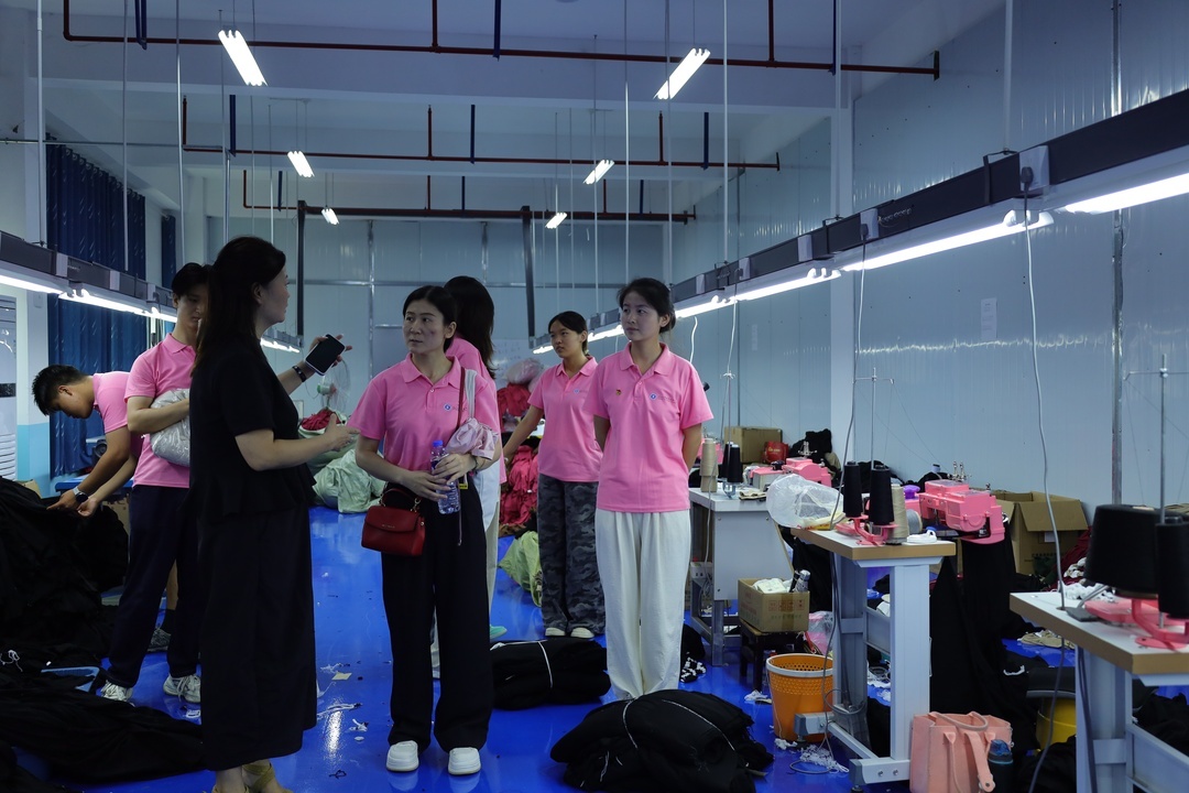 一、走进安康:实践团开启调研之旅 炎炎夏日,陕西工业职业技术大学“链动安康·商贸筑梦”暑期社会实践团踏上了前往安康市的调研之旅,目的地便是陕西聚福汇源纺织工厂。实践团成员怀着对专业知识的探索热情和对地方经济发展的关注,希望在这次调研中找到职业教育与地方产业融合的新思路。抵达工厂后,实践团受到管理层的热情接待,负责人详细介绍了企业的发展历程、技术创新和市场定位,让成员们对企业发展有了初步了解。