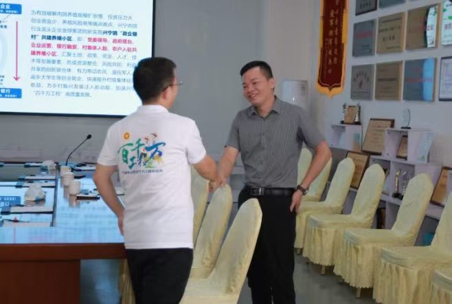 校企携手:交流共谋产业新篇 先锋队抵达兴宁市后,即刻与金绿集团主要负责人叶金龙、罗美梅展开深度交流。金绿集团代表叶金龙在交流中指出,金绿集团作为兴宁鸽产业的“领头雁”,肩负着带动乡村经济的重任。但要在数字时代飞得更高更远,亟需科技翅膀!金绿集团渴望借助VR等前沿技术,重塑品牌形象,拓展市场边界,讲好“兴宁鸽”故事。先锋队凭借在产业数字化服务领域的技术积淀与精准适配能力,与金绿集团一拍即合,共同擘画鸽业数字化新蓝图。