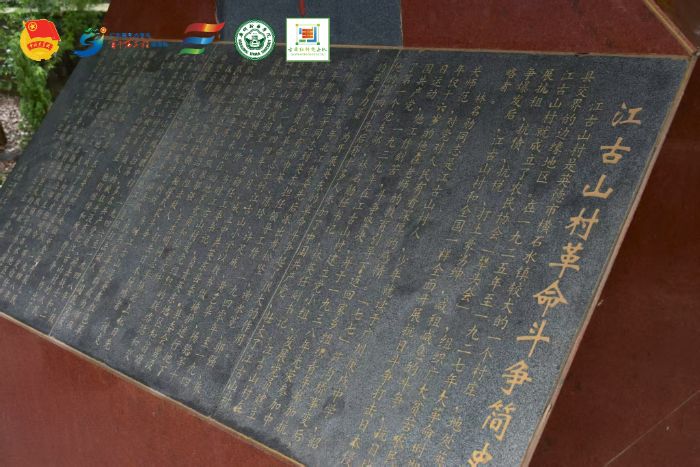思源亭内正面矗立着一座“人”字形纪念碑,碑上端刻有“革命历史纪念碑”7个字,碑座长1.8米、宽1.35米、高2.3米,碑座正面刻有“江古山村革命斗争简史”;碑座后面刻有13位烈士芳名,他们分别是:林作湘、林作优、林作亮、林作祈、林锦杨、林家俊、林锦章、林汝先、林宝琛、林名山、蓝应聪、黄锦中、林庆勋。思源亭后边和左右均为1米多高的围墙。