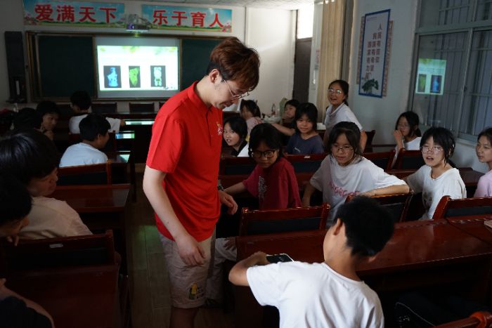 翟健梁博士的白大褂化身魔法袍。墨汁泼向超疏水布料,银珠般滚落不留痕;关灯刹那,他腕间蓄能发光手环绽放星河。“科学家向自然偷师学艺,”他让两名学生戴上特制手套浸入肥皂水,取出时一手湿润一手干爽,“未来防冻输电塔、自清洁航天服,就藏在今天的实验里!”