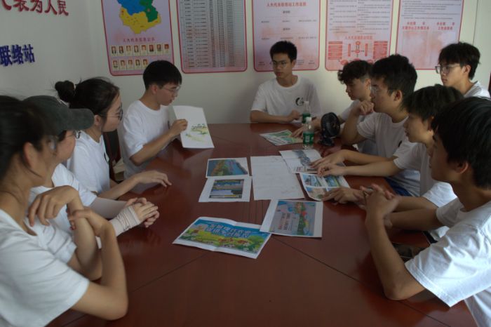 图为“青行”实践团成员在讨论墙绘设计(黄福柱供图)