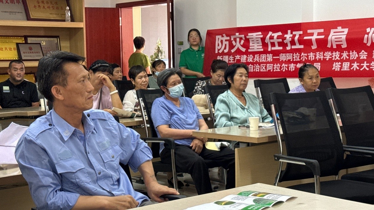 活动中,阿拉尔市气象局专家结合本地灾害实例,为居民讲解灾害性天气应对措施。塔里木大学服务团成员则分享了近期深入棉田调研的一手数据和发现,聚焦科学种植与灾害预防提出实用建议。牛建龙老师针对棉花防灾减灾关键技术进行了深入讲解,并对服务团调研中反映的问题进行了专业回应,内容紧贴生产实际。