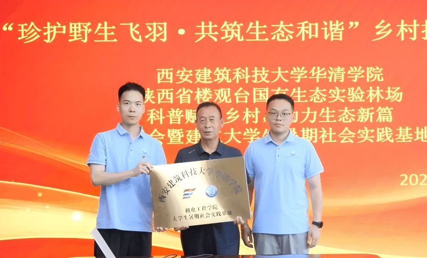 楼观台林场会议室里,西安建筑科技大学华清学院与陕西省楼观台国有生态实验林场正式建立大学生暑期社会实践基地(以下简称“林场”)。未来,实践团将充分发挥青春力量,助力野生鸟类保护和生态环境改善,林场也将为实践团提供有利的场地与坚实的支持,继续推动乡村绿色发展。