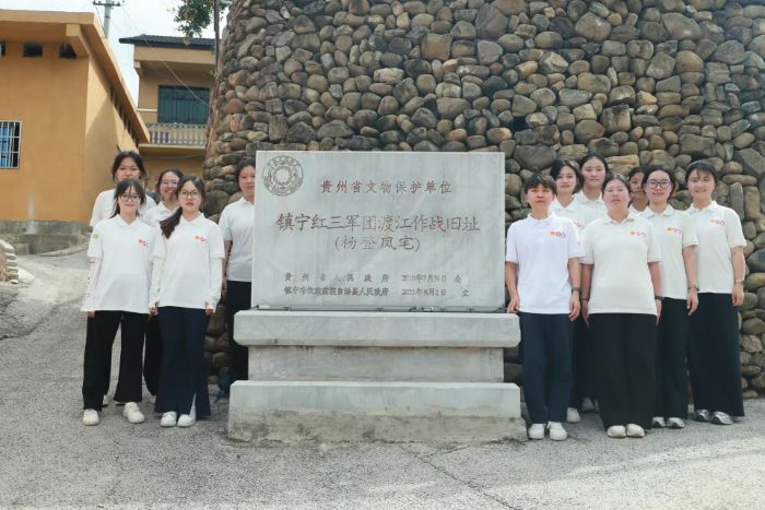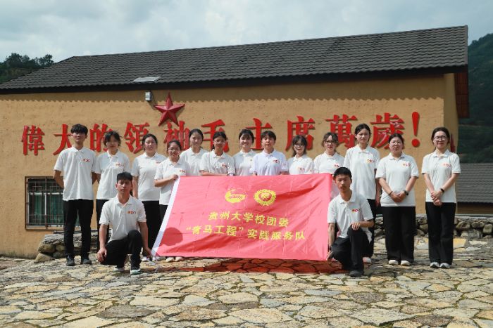 团委网站讯(记者徐再杨世英报道|摄影李翊萌陈厚文)“五星红旗迎风飘扬,胜利歌声多么响亮……”《歌唱祖国》的旋律响彻在板袍村上方。7月14日,贵州大学校团委“青马工程”实践服务队来到贵州省安顺市镇宁布依族苗族自治县,在贵州红色美丽村庄——板袍村,开展实践活动,通过参观红色遗址、聆听革命故事、重温长征历程,感悟红色精神,汲取奋进力量。