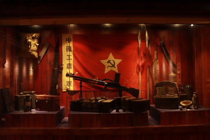 实践队首先来到板袍村陈列馆,馆内陈列着红军长征时期的历史照片和文献资料等珍贵文物、,生动再现了红三军团在镇宁的战斗历程。1935年4月,红军长征途中,三军团十三团急行军于13日下午抵达江龙,大部分留在江龙及附近村寨修整,派出一支精干分队佯攻镇宁后折返江龙,这是抵镇宁县辖地的第一支红军部队。