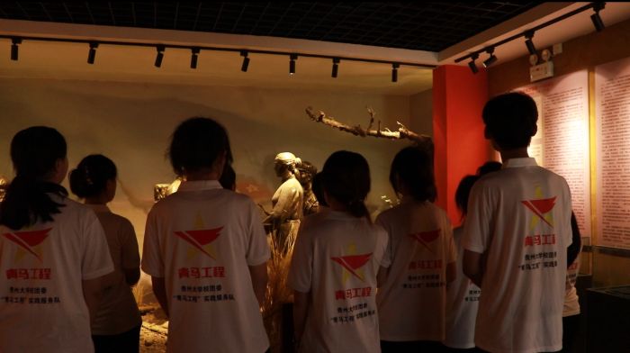“看到这些锈迹斑斑的军用水壶、磨损严重的草鞋,仿佛看到了红军战士不畏艰险、英勇奋斗的身影。”实践队队员杨世英感慨道。陈列馆内,收藏着《红军长征在安顺》、《瀑乡镇宁的红色注事》、《红军长征过镇宁史实》等红色主题书籍,墙壁上的一幅幅历史画卷让队员们深刻体会到革命先辈的坚定信念和牺牲精神。
