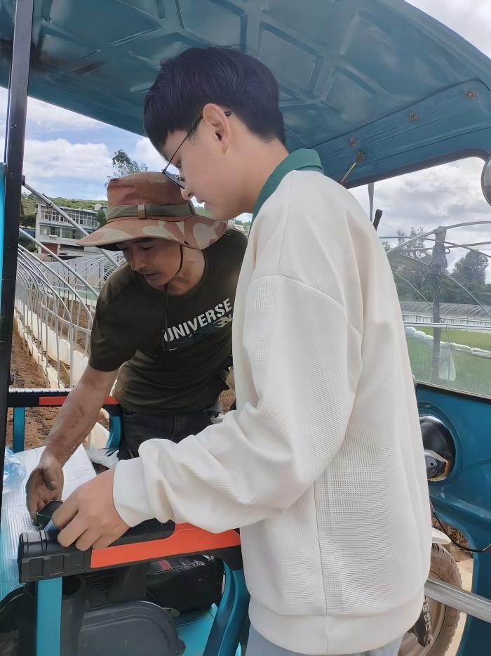 图为队员彭鑫浩指导草莓种植户使用抖音、快手直播功能。罗婷 供图