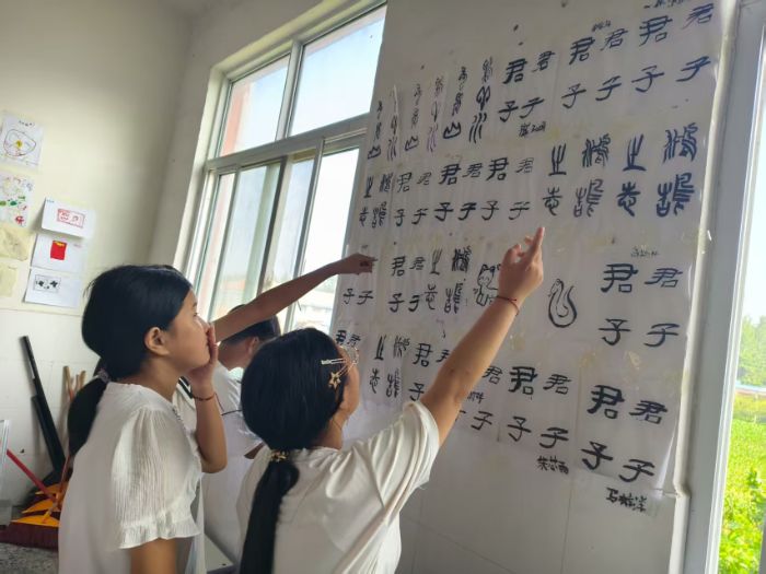 君子”作品整齐排布,墨香混着宣纸的气息漫散开来。相信他们对君子的理解,正随着笔墨的晕染,一点点渗入心里。