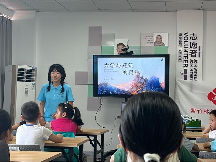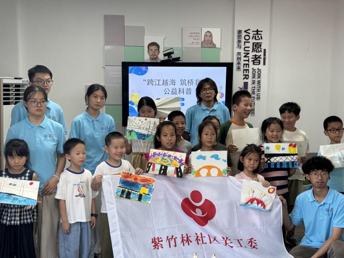 社区科普:趣味互动传递科学薪火 7月16日,实践团队前往南京本地的紫竹林社区,面向小学生开展古建筑力学科普宣讲活动。通过精心设计的有奖问答环节,充分调动了孩子们的学习积极性,现场气氛十分活跃。活动的亮点是亲手拼接桥梁模型的互动环节,孩子们在团队成员的指导下,通过动手实践深入了解建筑力学结构的基本原理。从简单的梁式结构到复杂的拱桥设计,每一个拼接过程都让孩子们对力学知识有了更加直观的认识。在模型搭建过程中,团队成员耐心讲解承重分布、结构稳定性等基础概念,让抽象的力学原理变得具体可感。