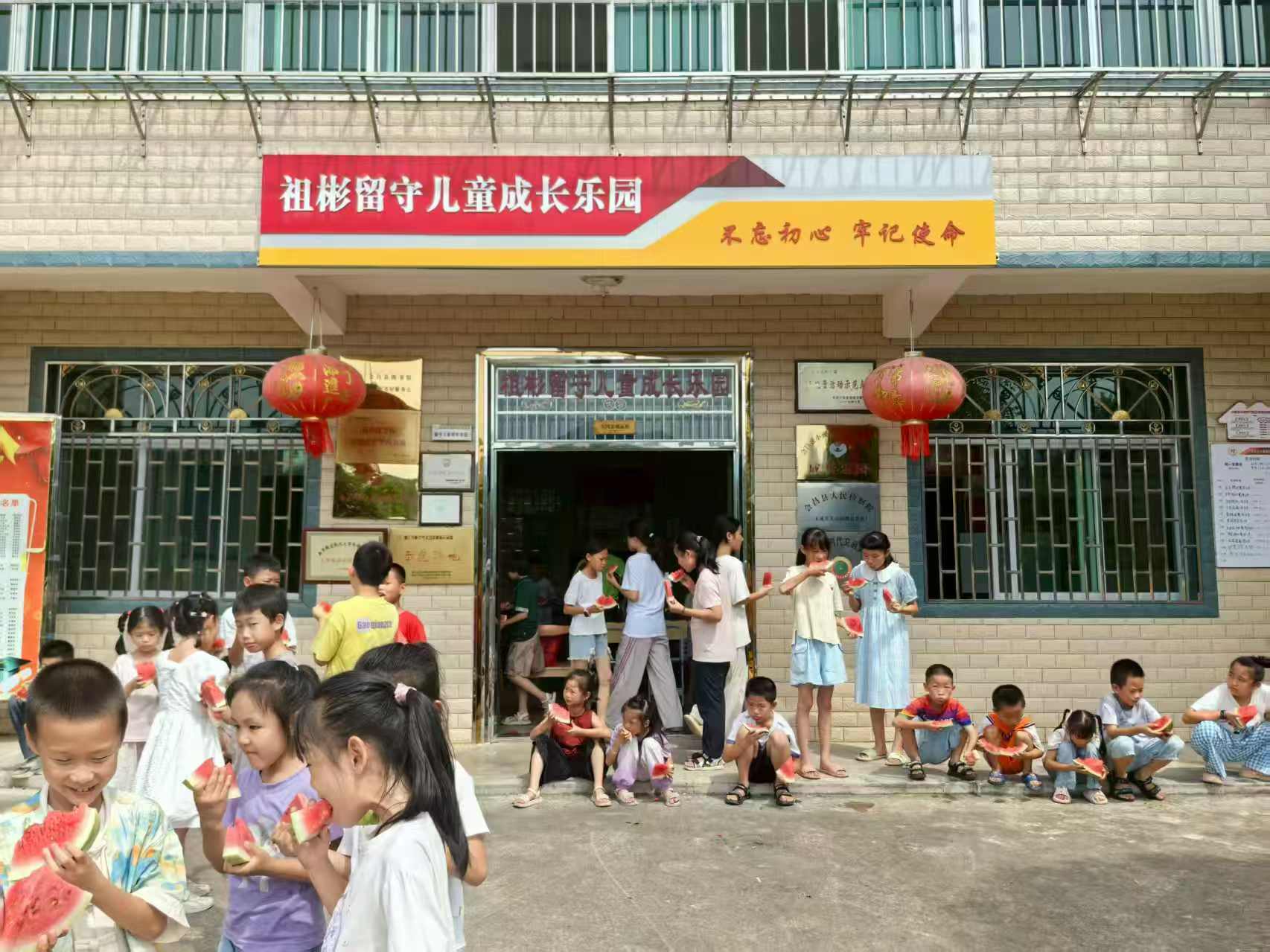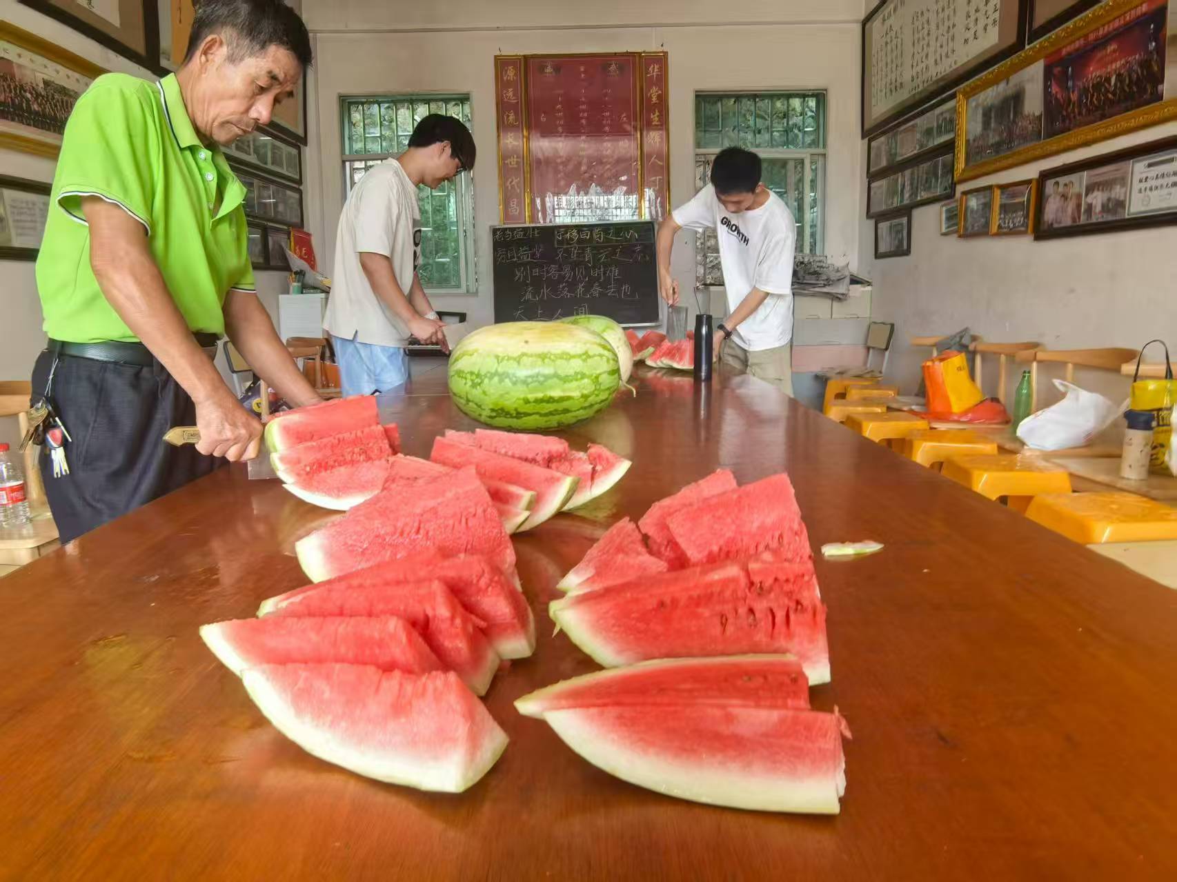 中午炽热的阳光炙烤着校园,三位老师切好西瓜,分给了孩子们。孩子们伸出或急切、或略带拘谨的小手,从老师手中接过属于自己的那份清凉。清脆的啃咬声、满足的喟叹和低低的、带着甜味的笑语交织在一起,鲜红的瓜瓤映着孩子们亮晶晶的眼睛和沾着汁水的笑脸,仿佛为这所乡间学校注入了最鲜活的色彩与清凉。这简单的瓜果,此刻是驱散暑热最直接的慰藉,也是萦绕在孩子们舌尖心头,一份实实在在的夏日馈赠。